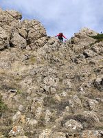 Nos agrupamos de nuevo en el Puerto de Horcadas e iniciamos el descenso por la Hoz de los Escalones hacia Horcadas.