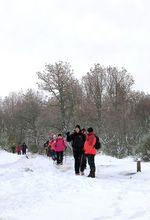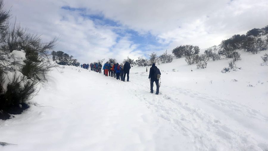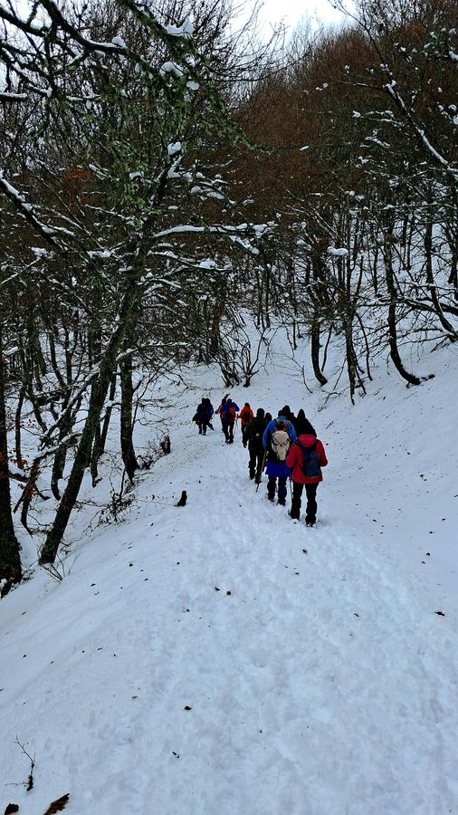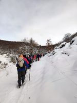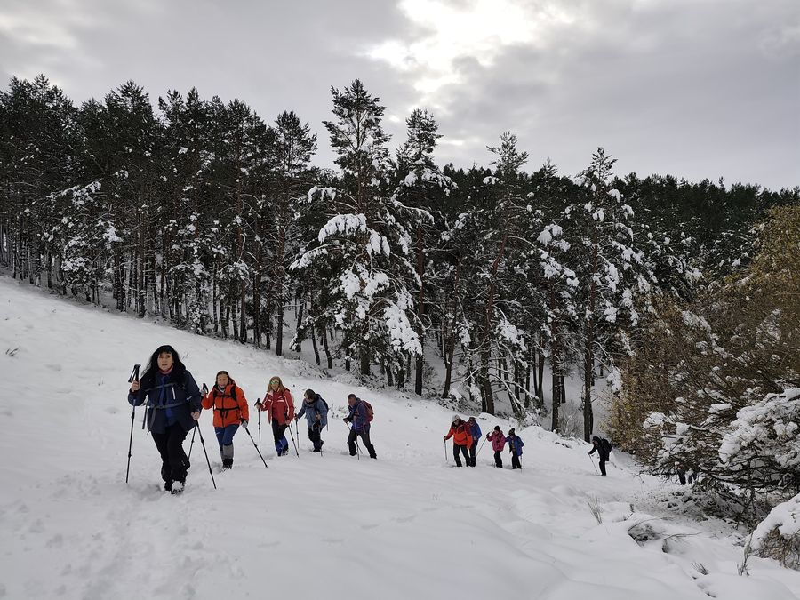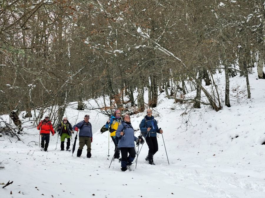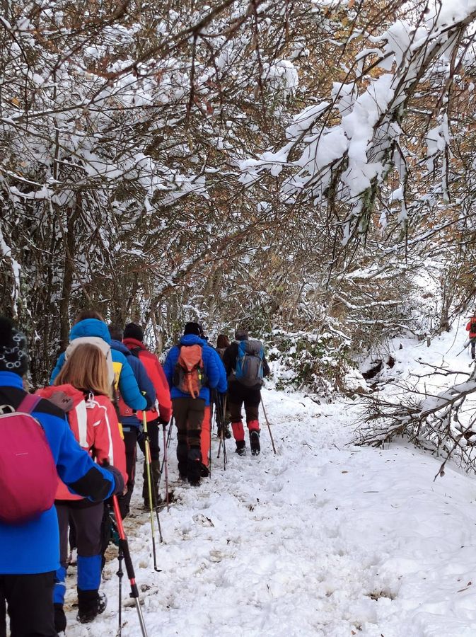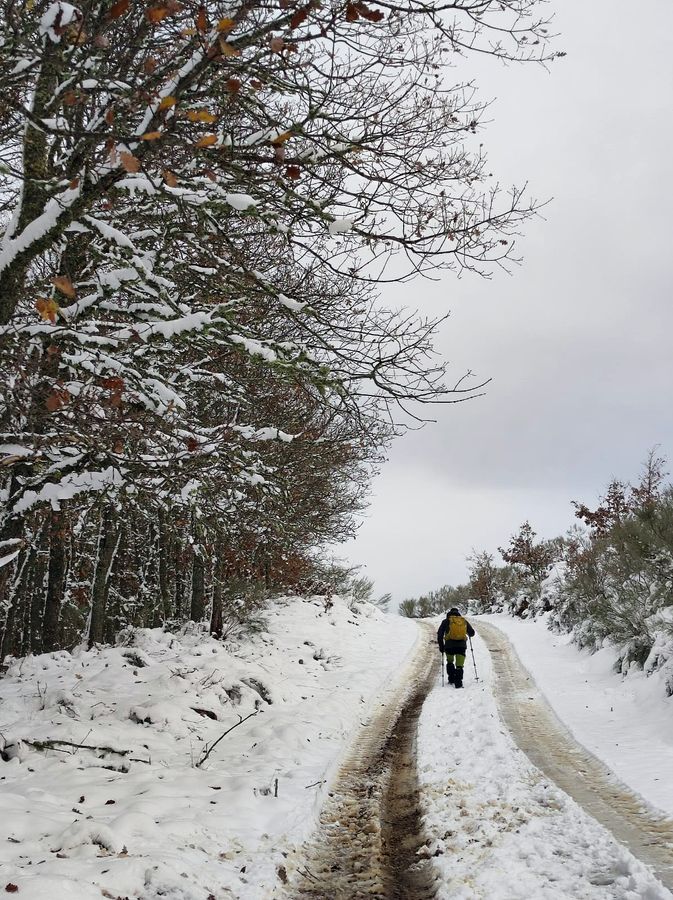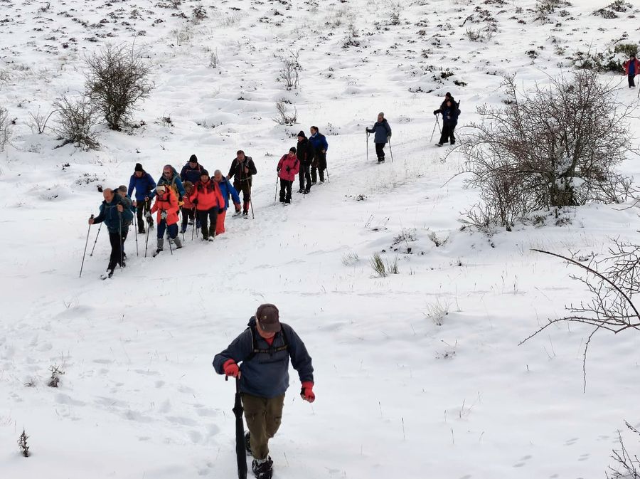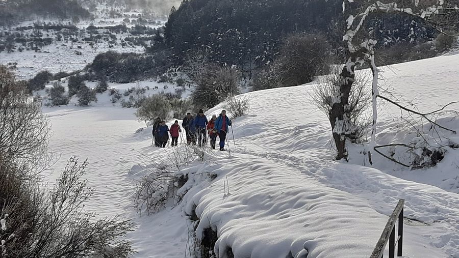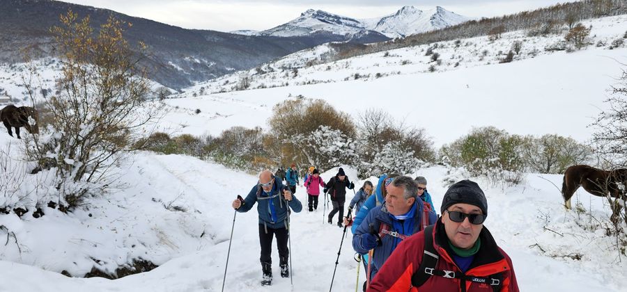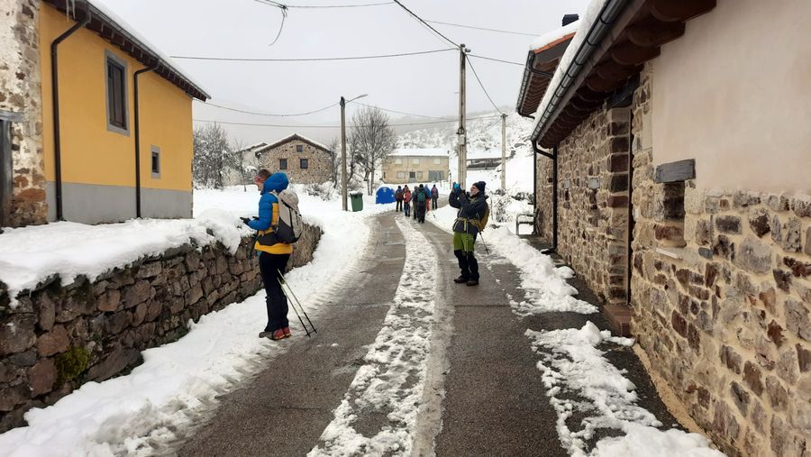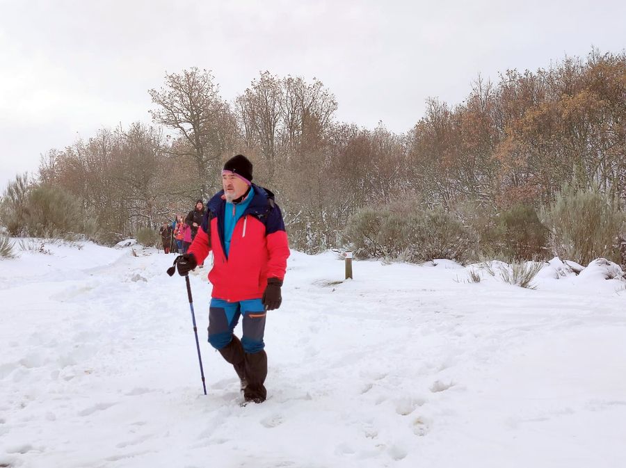 Casi una treintena de personas nos juntamos para realizar esta etapa en un dÃa algo frÃo, pero seco. Con nieve, en algunos tramos abundante, que hizo las delicias de los andarines, en una jornada muy prestosa.