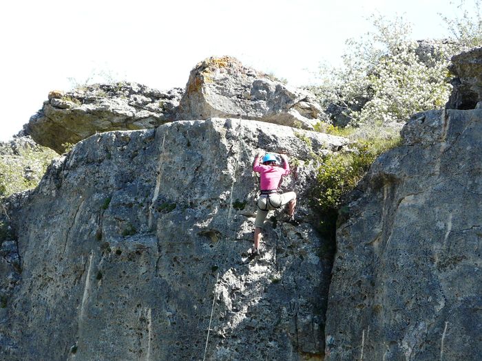 El 17 de Mayo de 2009, nos juntamos 11 personas, entre ellas 3 niños para dar un paseo suave por la zona de Gama. Salimos desde el pueblo subiendo hasta el Castillo, y de allà nos dirigimos al Valle de Recuevas, donde querÃamos observar a algún escalador en plena faena. Tuvimos suerte y durante los 45 minutos que estuvimos picando algo, vimos como se movÃan unas cuantas personas en las paredes de piedra. Luego los niños hicieron sus pinitos en una peña de poca altura y de allÃ, para casa. Buen tiempo y la labor hecha.
