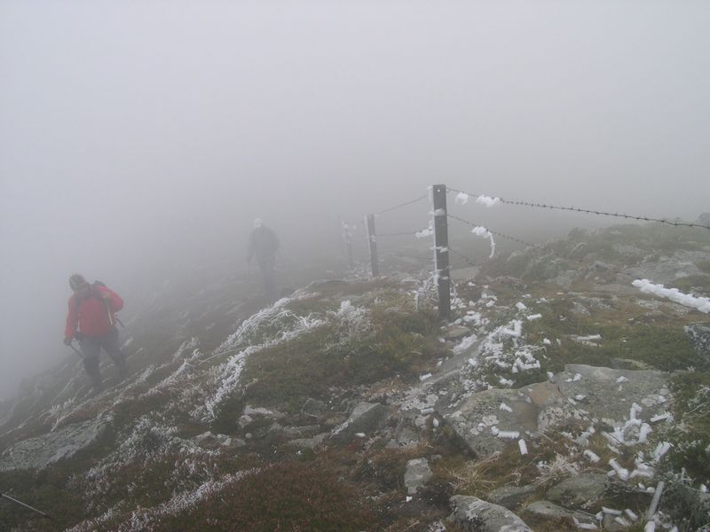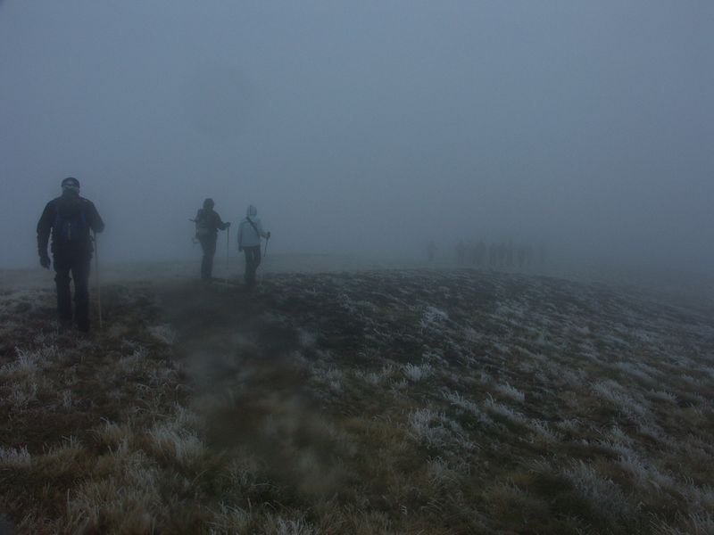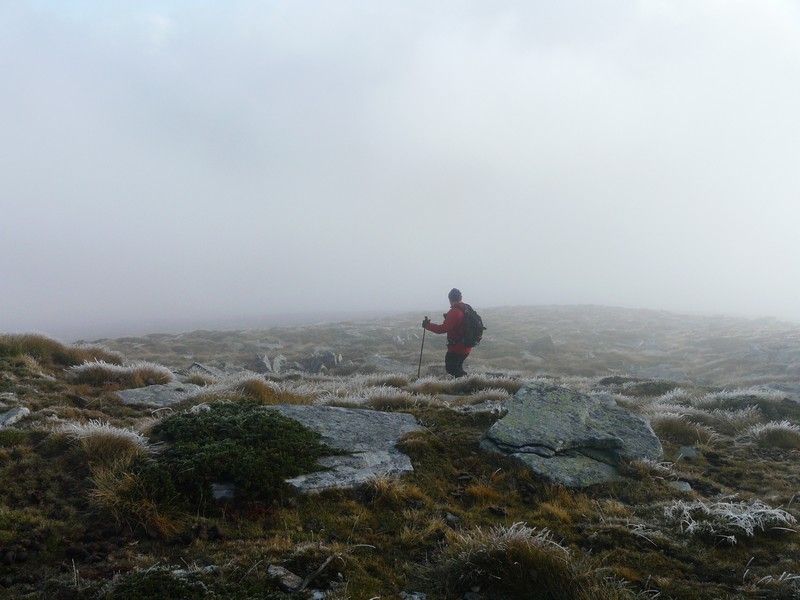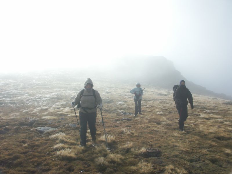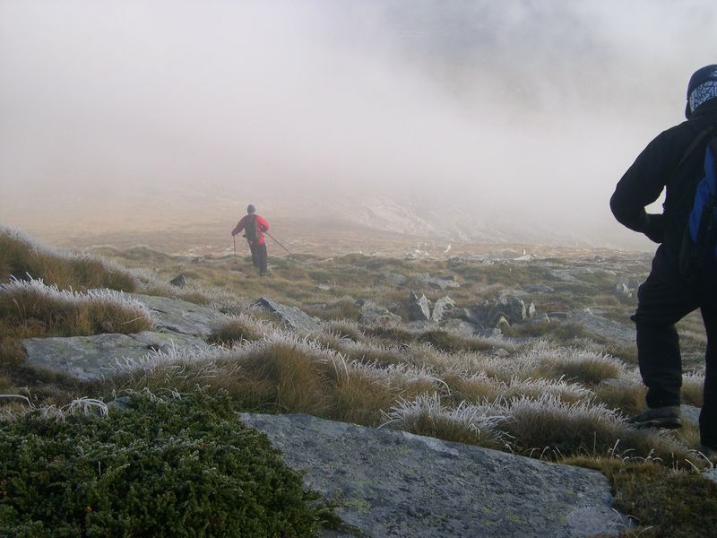 Arrancamos a andar casi de noche y ya en el Sestil, nos metimos en la niebla, de la que no hemos salido hasta empezar a descender de Peña Labra. No hicimos ni el Tres Mares ni la cima de Peña Labra, aunque nos acercamos hasta el mismo collado. Temperaturas de 4 grados bajo cero y un viento que hacia que la sensación témica fuera de Enero.