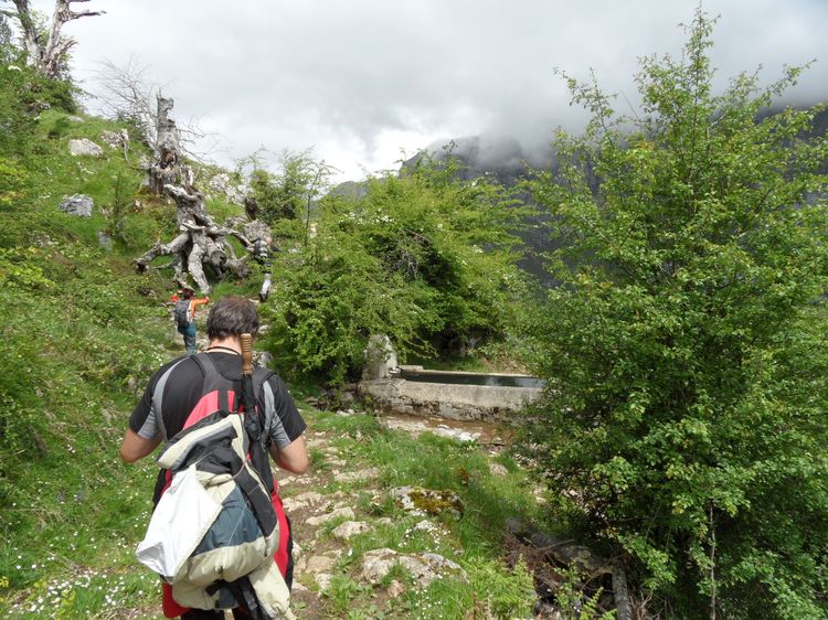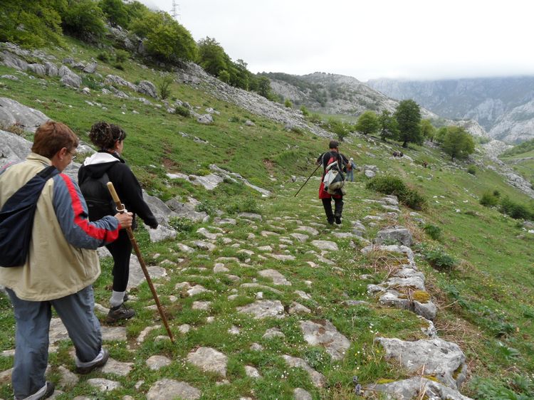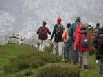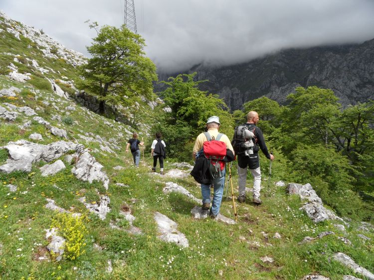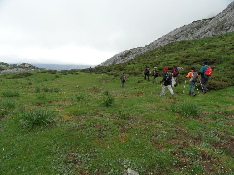 16 personas nos juntamos para realizar esta preciosa ruta que nos lleva desde León a Asturias por la Senda del Arcediano. Partimos de Soto de Sajambre con buena temperatura, pero nublado, y al alcanzar los 1400 m de altitud nos metimos en la niebla, que no nos permitió disfrutar de las vistas de Picos que se adivinan desde allÃ.