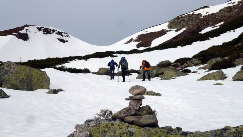 Cancelada la ruta a las Cascadas de Hielo por falta de hielo, decidimos acercarnos a las Casas de la Mina, junto a la Peña de las Agujas, para aprovechar el domingo. A pesar del viento, en algunos momentos bastante molesto, disfrutamos de una buena mañana de monte.