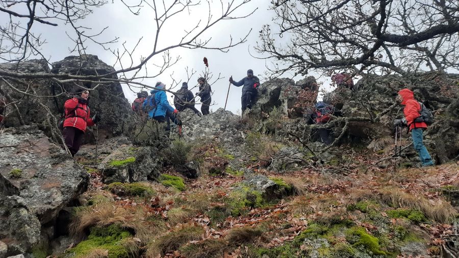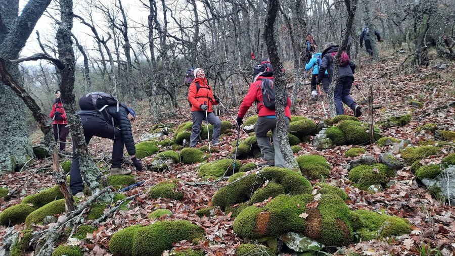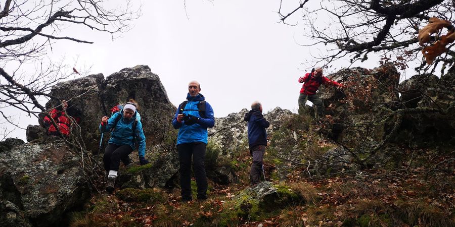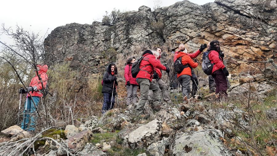 Una veintena de senderistas nos juntamos en Barruelo para realizar un recorrido circular por la PeƱa el Arco, PeƱas de Villabellaco, "el bosque encantado", Dos de Valle, el Calero y Barruelo.