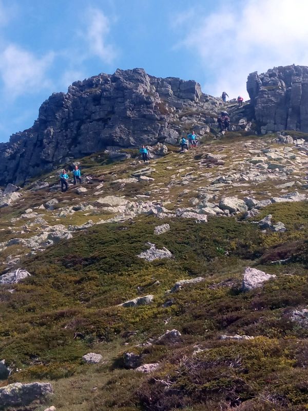 A las 7:30 echamos a andar para arriba haciendo todas las cumbres del cordal: Sestil,Cotomañin, donde comimos el bocata.