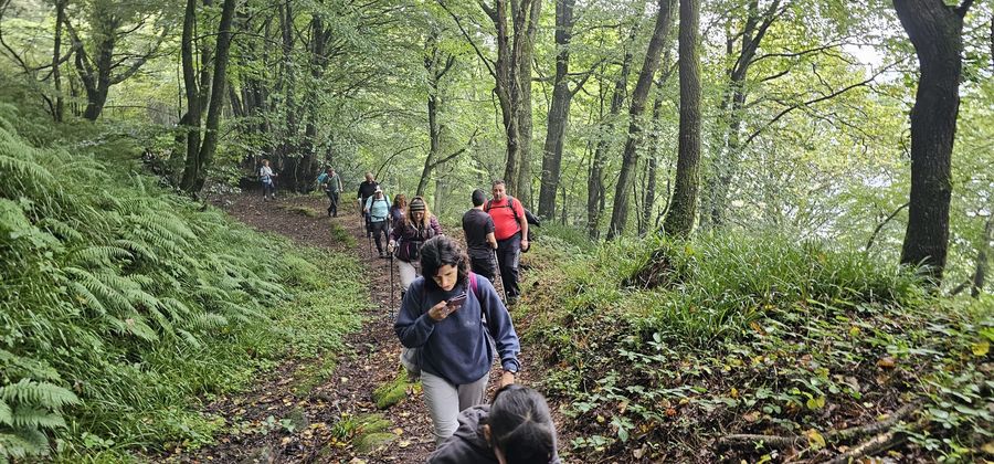 32 personas nis juntamos para hacer la calzada Romana desde Pesquera a Barcena de Pie de Concha, pasando por Somaconcha, Mediaconcha y Pie de Concha. Ruta de baja dificultad pero en la que hubo que estar atentos ya que el suelo estaba muy resbaladizo.